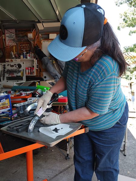 Heidi pains takingly stipping the top bands of the Model 76